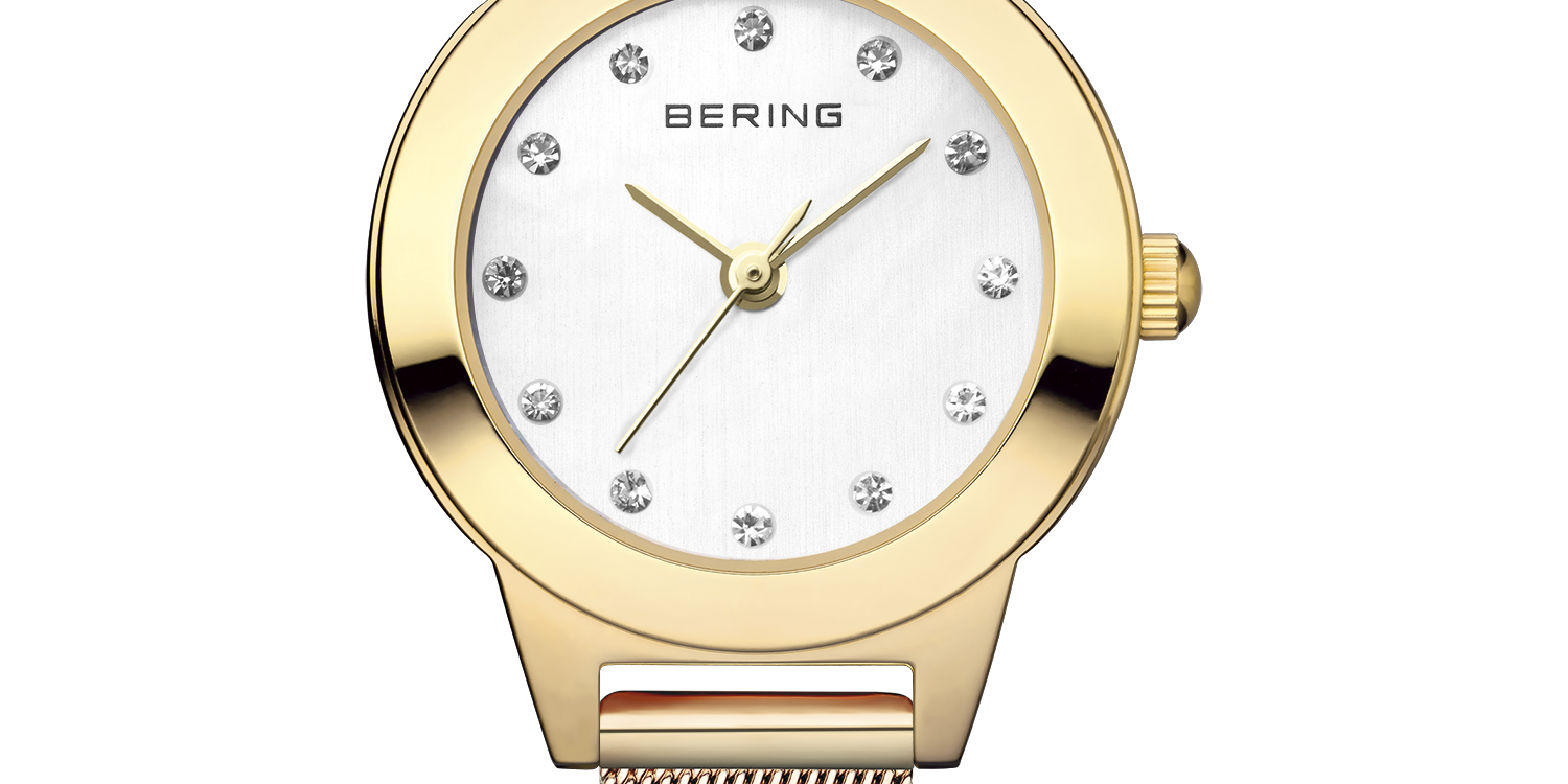 Ladies yellow tone watch with mesh band