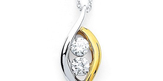 White & yellow gold two diamond pendant